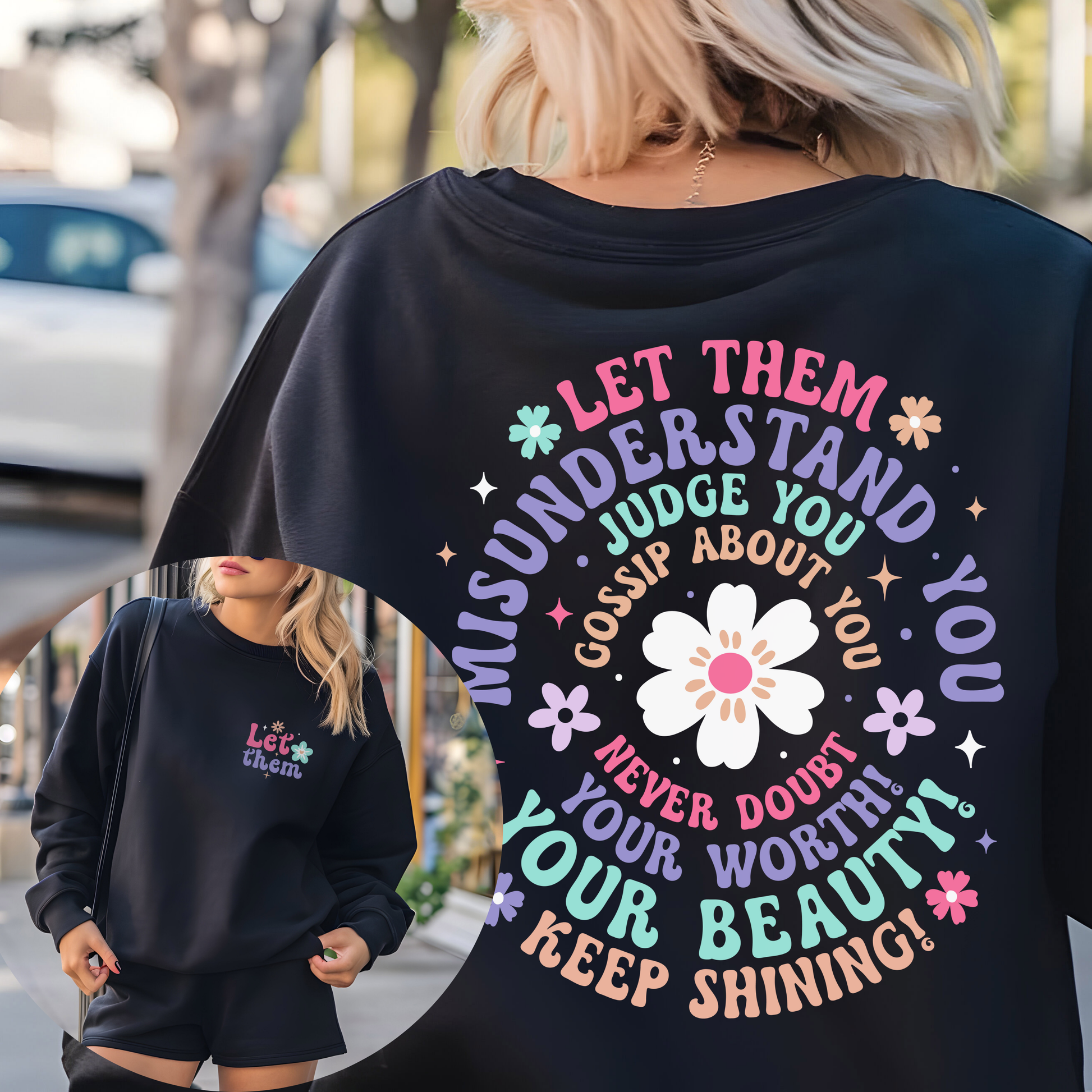Stay cozy and inspired with our Let Them sweatshirt. This ultra-soft, relaxed-fit sweatshirt is perfect for those who value comfort and a meaningful message. Featuring the simple yet powerful phrase "Let Them," this sweatshirt serves as a gentle reminder to embrace peace, let go of negativity, and allow others to be themselves. Whether you’re lounging at home, running errands, or meeting up with friends, this sweatshirt will keep you warm and stylish throughout the day.